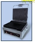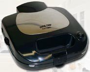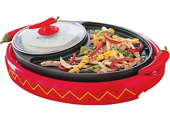 This 800-watt grill is another variant of the popular George Foreman Lean Mean Fat-Reducing Grilling Machine. Its appeal lies in its simplicity and countertop convenience--not to mention its fat-fighting ability. The double-sided grill (with nonstick cooking surface) is large enough to simultaneously cook two burgers, steaks, or chicken breasts--or lots of sausage, fish, shrimp, or vegetables--on the top and bottom in minutes. (Recipes accompany the grill.) Grill marks not only look appetizing but also contribute caramelized flavor. The bottom grill's deep channels collect fat, and the grill is sloped so the fat runs off into a dishwasher-safe plastic tray (included) stationed under the unit's front. The top grill's hinge floats to accommodate foods of varying thickness. A 3 pack of specially designed grill sponges are included as a bonus.