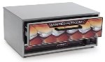 The 75 Hot Dog Grill-Max® Roller Grill w/ Bun Drawer (75SCBD) includes everything you need to successfully merchandiser hot dogs at a convenience stand, stadium, recreation center or other foodservice space. The rollers are made with Duratec® non-stick coating for lasting durability and easy of use, and their bearings are coated with Seal-Max for smoother operation, lower maintenance and grease-free internal operation. With front-to-back slanting, the rollers provide a perfect presentation surface. The buns are kept below in an included bun drawer for quick retrieval and perfect bun temperature. Features: 360° roller rotation, Built-in bun drawer, Incoloy sheath elements, Infinite temperature controls, “Stadium seating” slanted rollers. Benefits: Slim-line design increases capacity, Duratec® rollers prevent foods from sticking, Colorful merchandising graphics to build impulse sales, Seal-Max heavy-duty roller bearing and seal combination provide smoother operation, longer life, low maintenance and grease-free internal compartments. Additional Considerations: 1 year parts and labor warranty.
