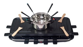 - Comes with a stainless steel pot for fondue or hot pot and 6 forks
